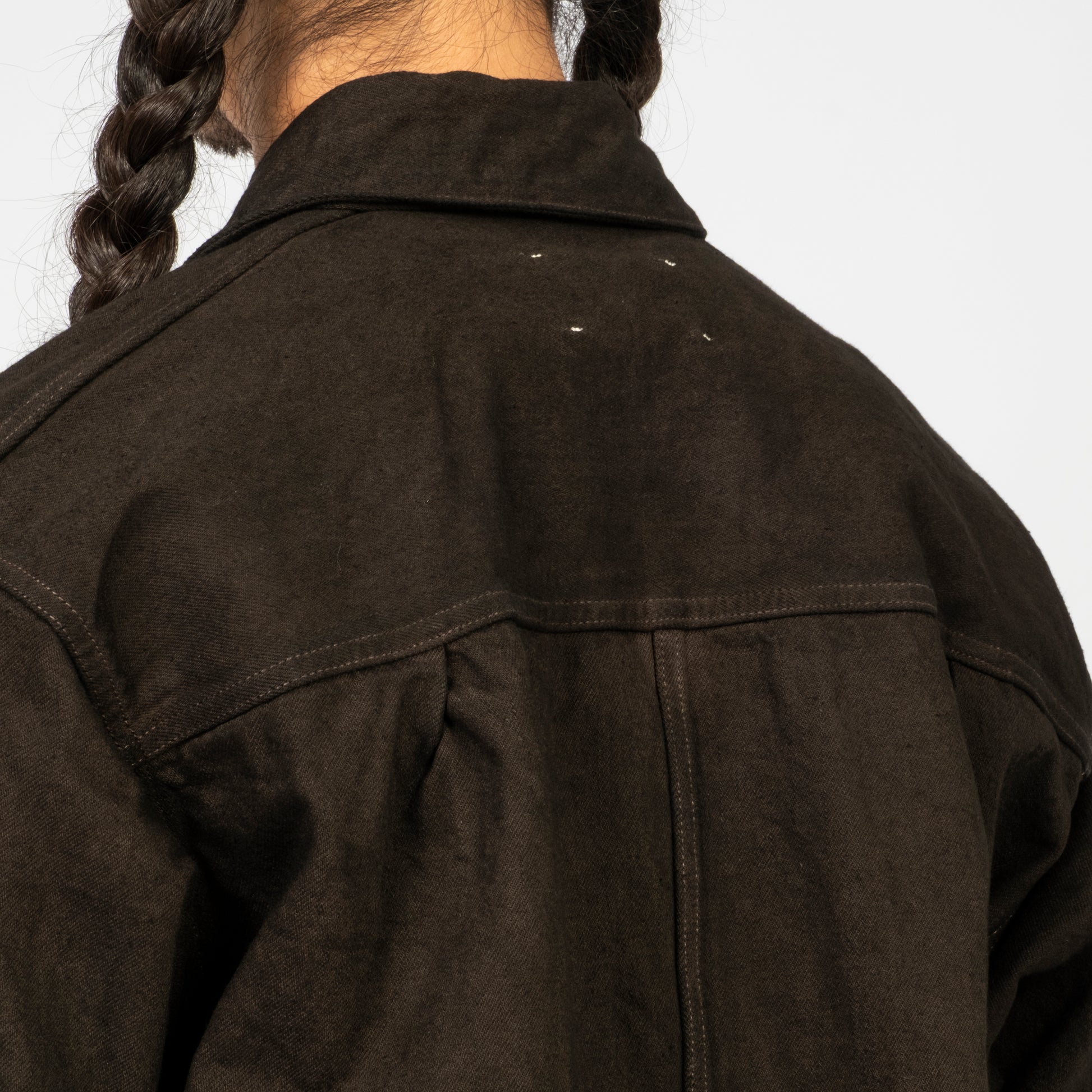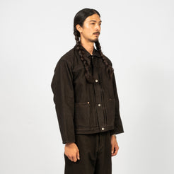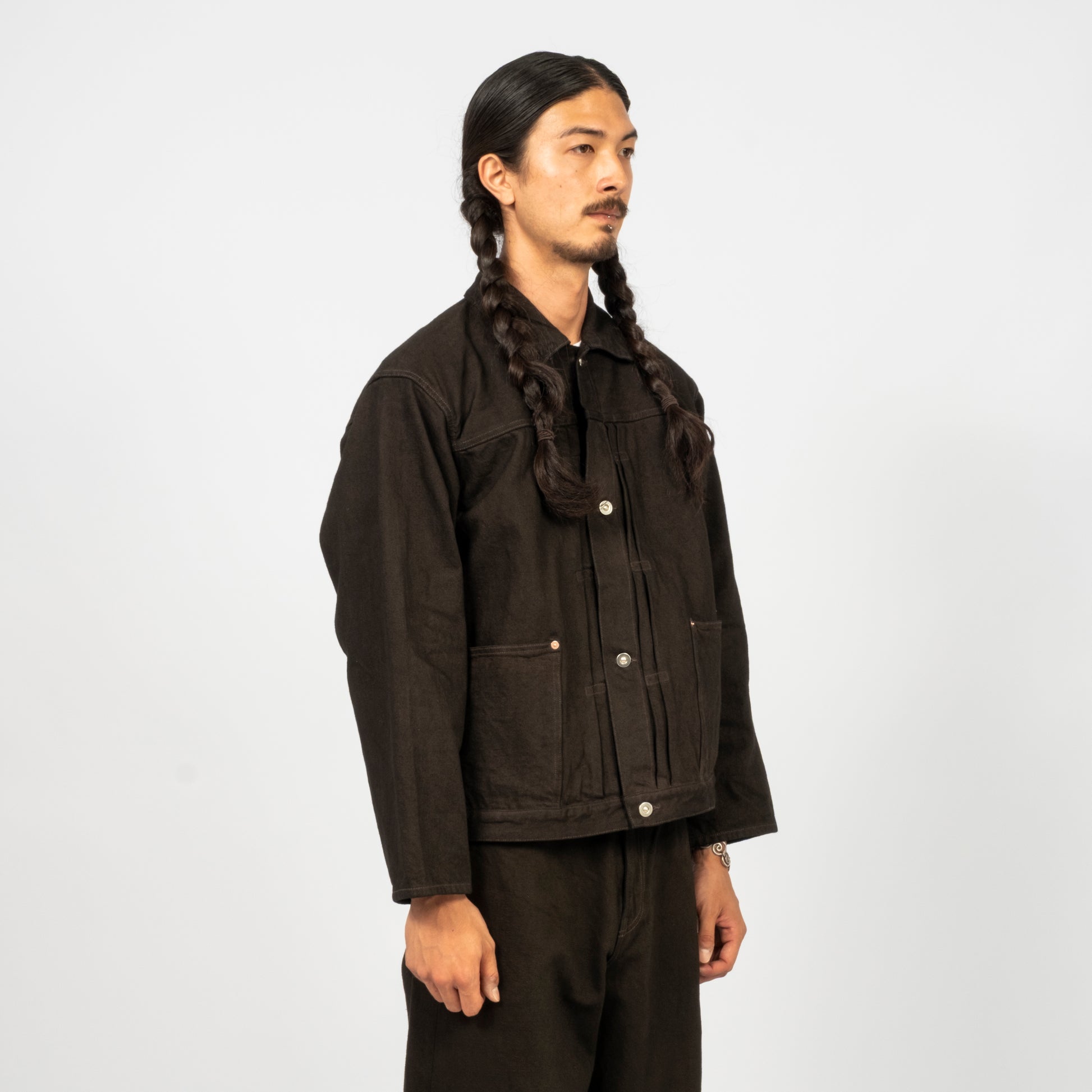 YOKO SAKAMOTO  A pleated blouse inspired by the simple house-brand pieces of an earlier era, designed with denim-jack...