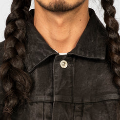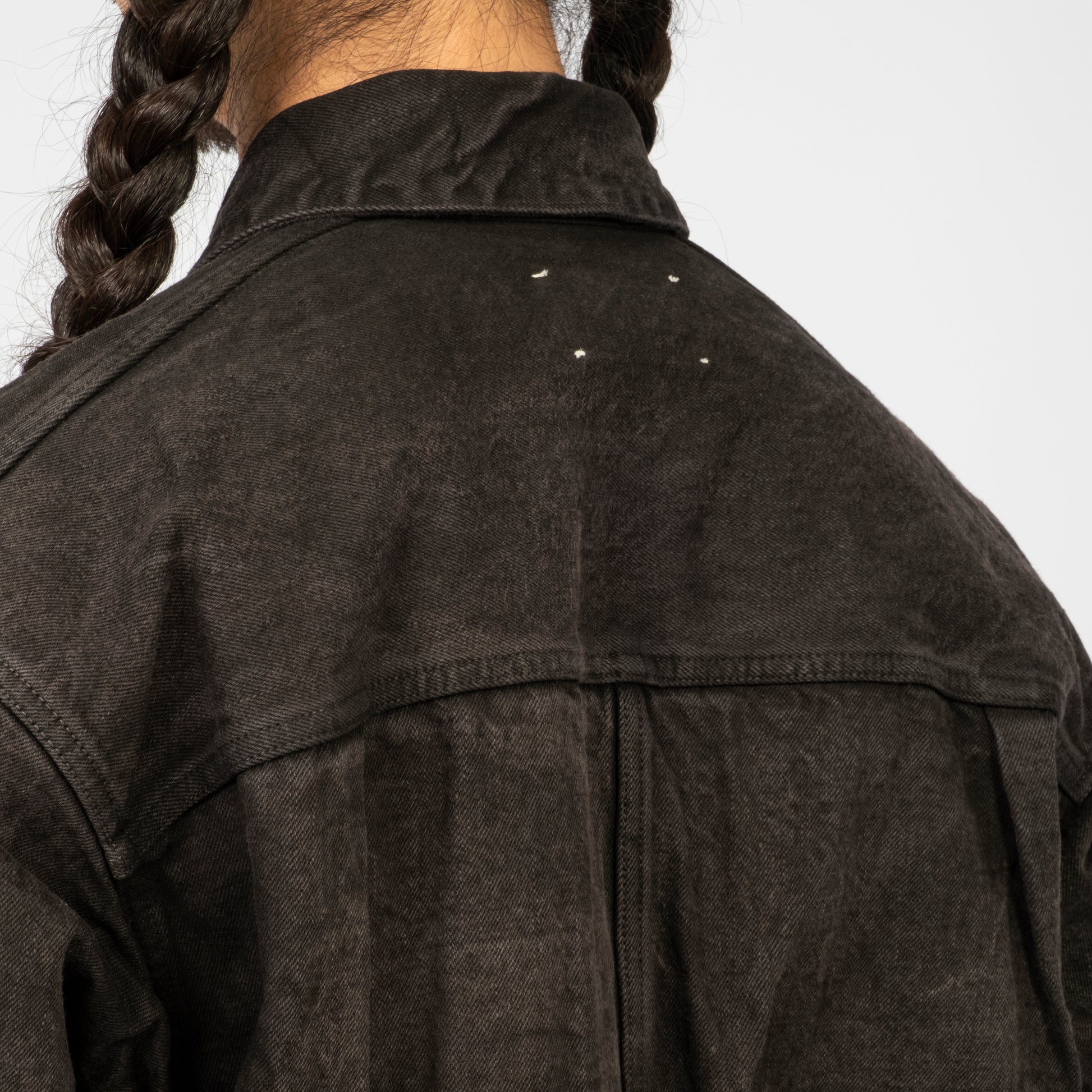 YOKO SAKAMOTO  A pleated blouse inspired by the simple house-brand pieces of an earlier era, designed with denim-jack...