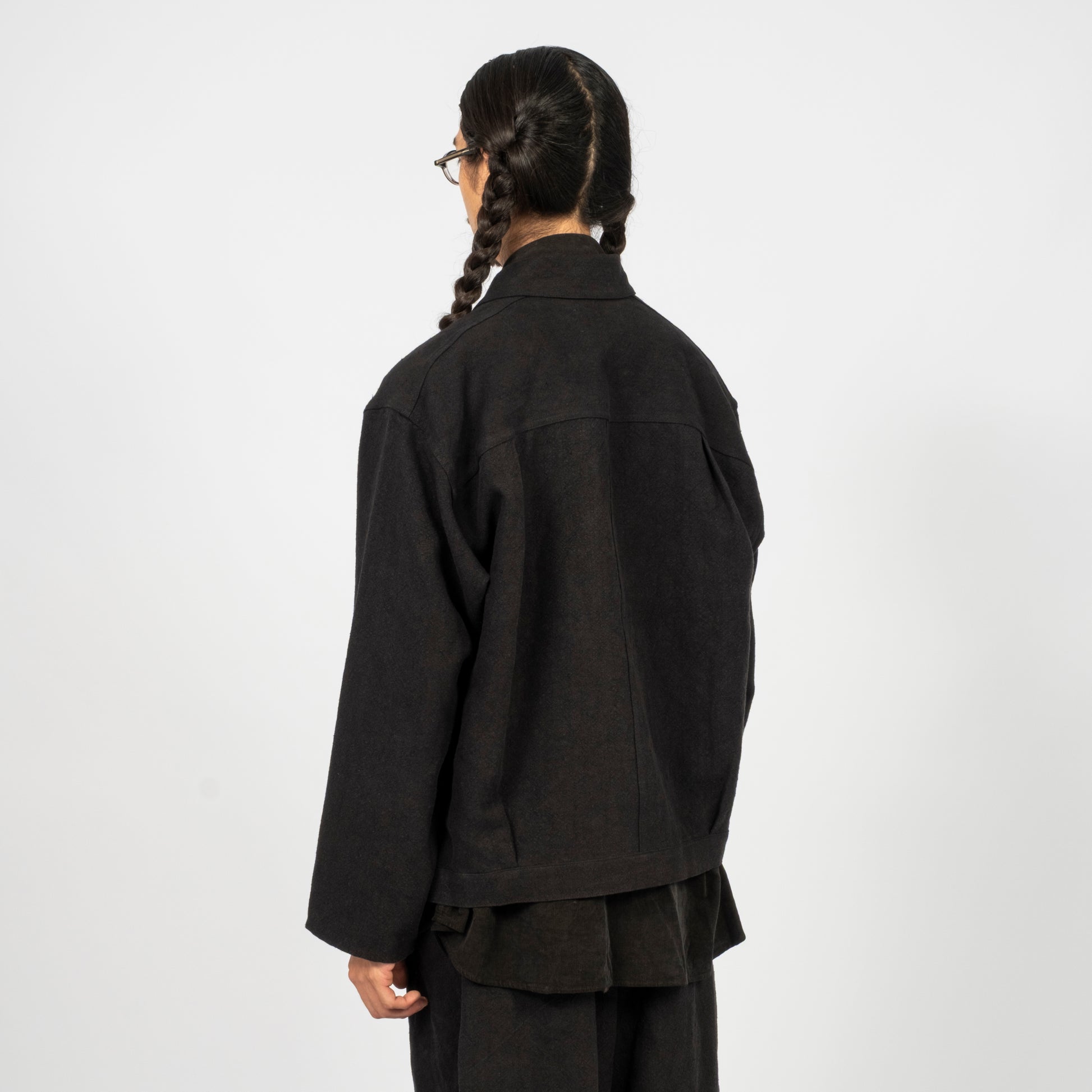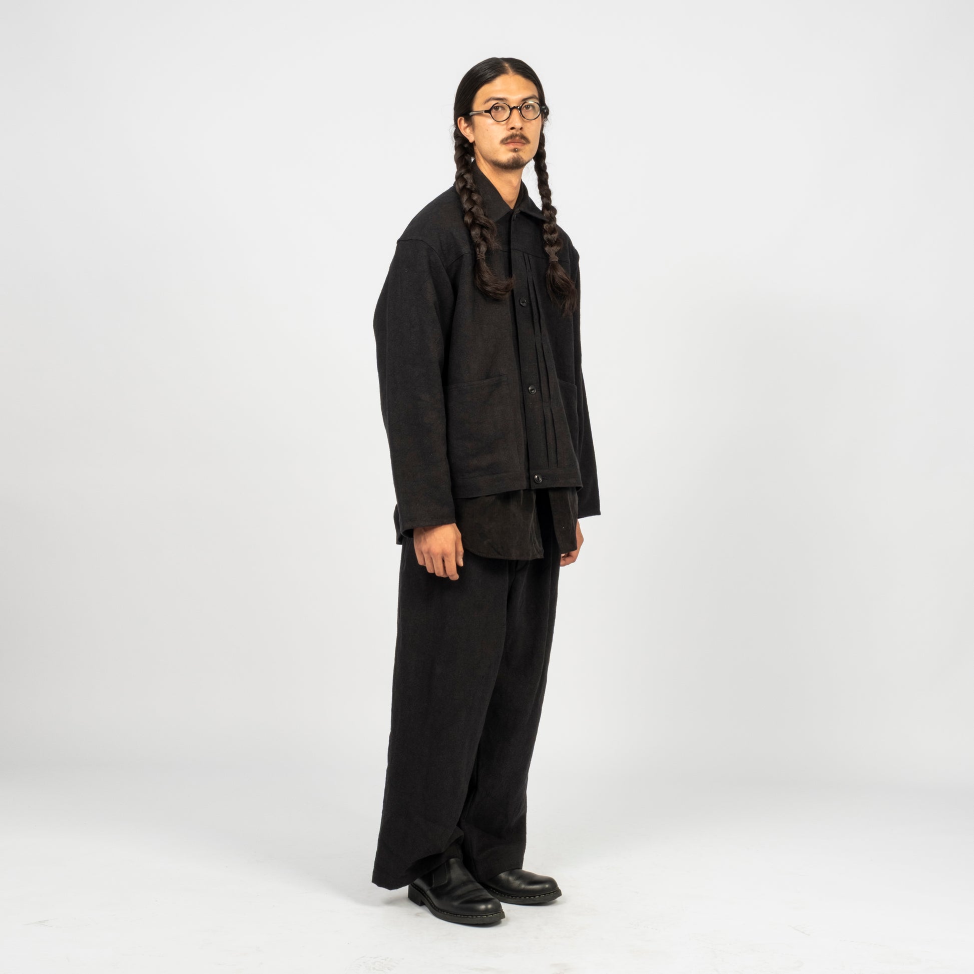 A pleated jacket inspired by the simple house-brand pieces of an earlier era, finished with oversized pockets for easy carry. Crafted from an original Bishu-woven hemp fabric made on old shuttle looms, then nidom-processed for natural texture, softness, and a worn-in feel.